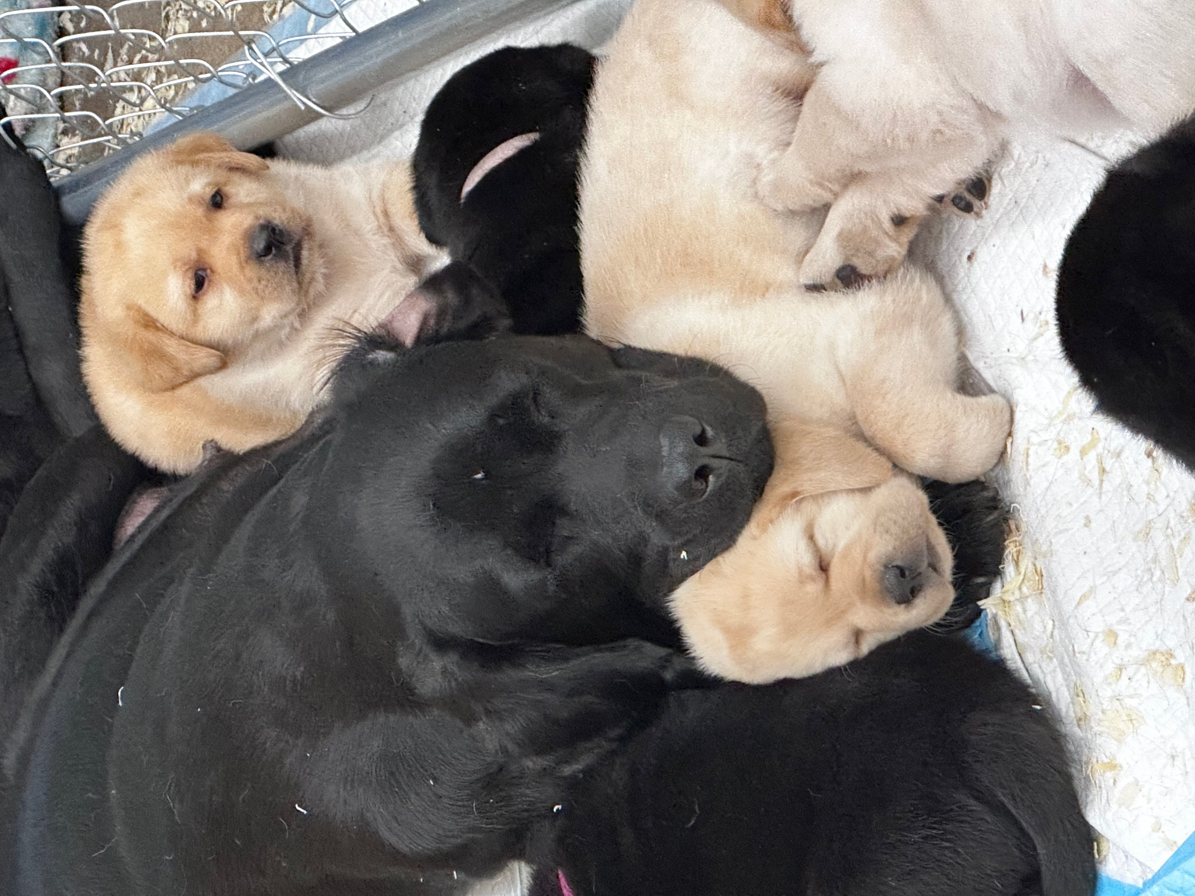 Right now, the puppies are in their most adorable stage—full of curiosity, wiggly tails, and sleepy cuddle piles. Between nap time, mealtime, and short bursts of playful energy, they’re learning important early socialization skills that will help them grow into confident, capable companions.