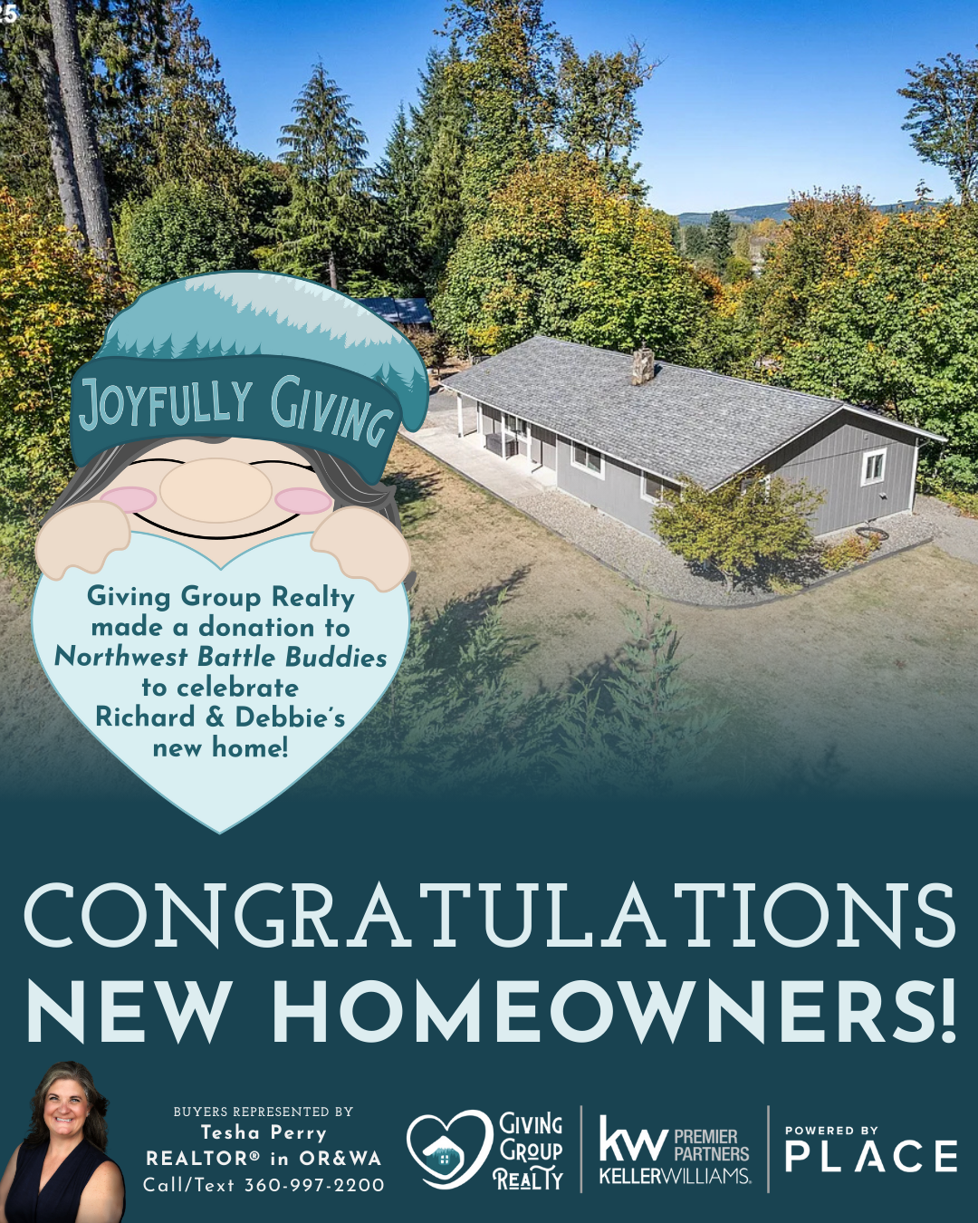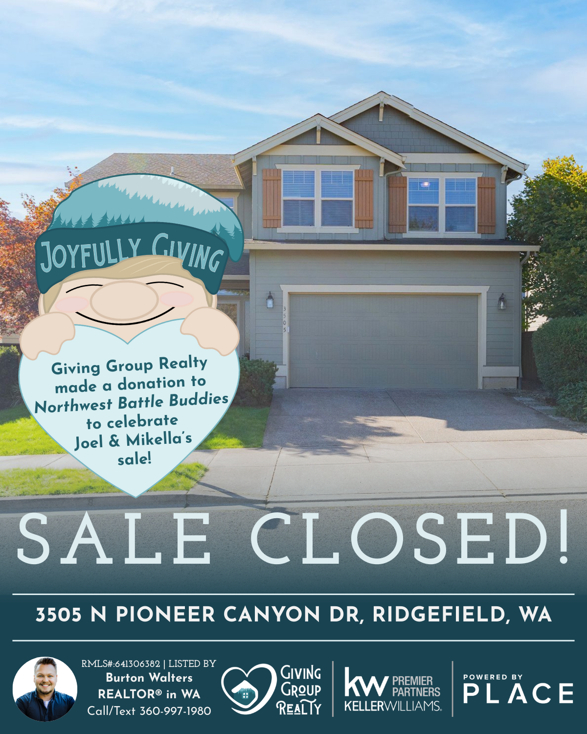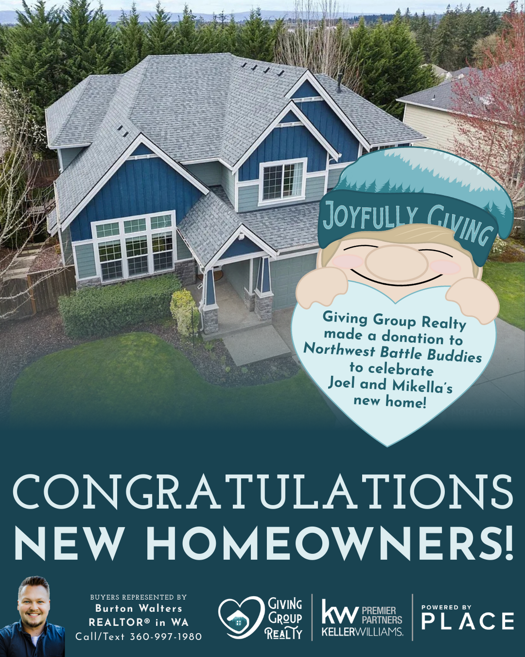 Congratulations, Joel and Mikella! We made a donation to Northwest Battle Buddies to celebrate your sale.