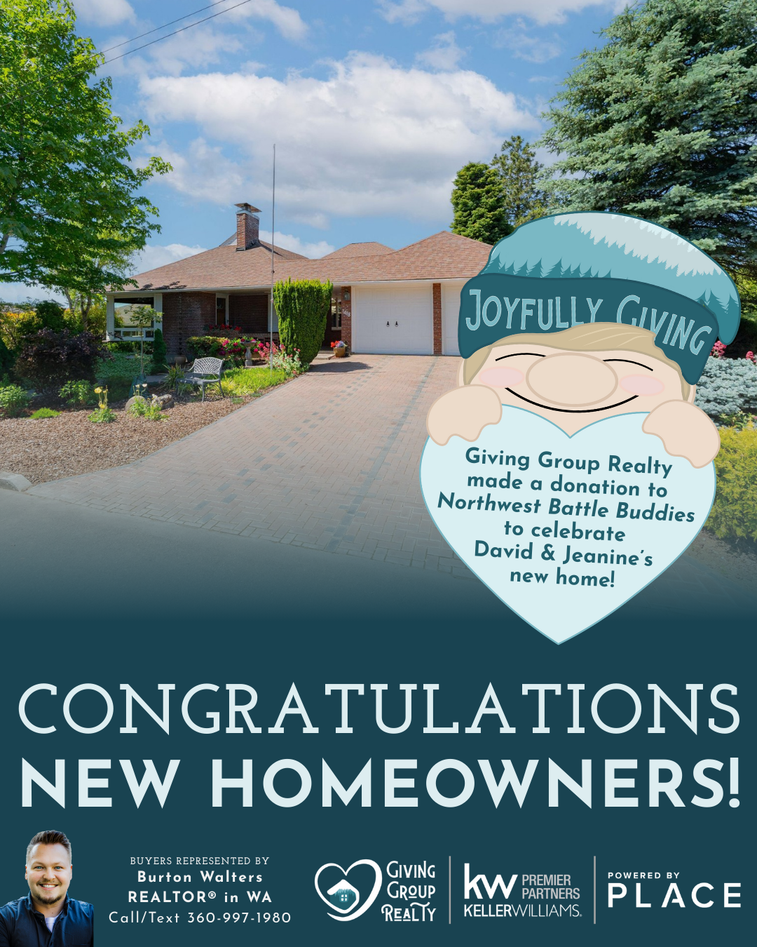 Congratulations, Richard and Debbie! We made a donation to Northwest Battle Buddies to celebrate your new home.