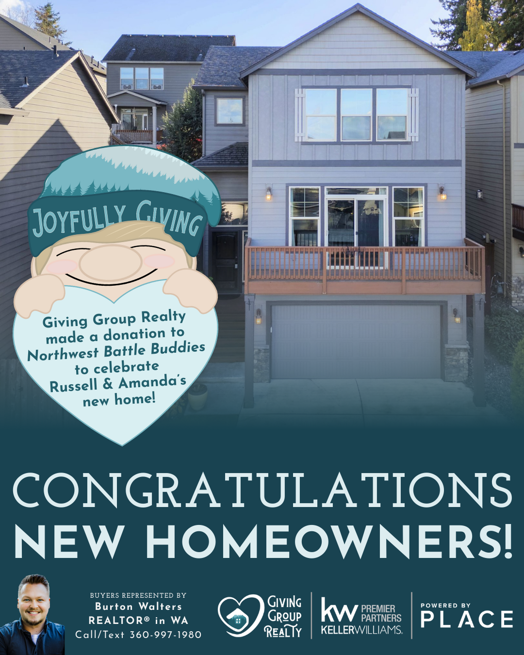 Congratulations, Russell and Amanda! We made a donation to Northwest Battle Buddies to celebrate your new home.