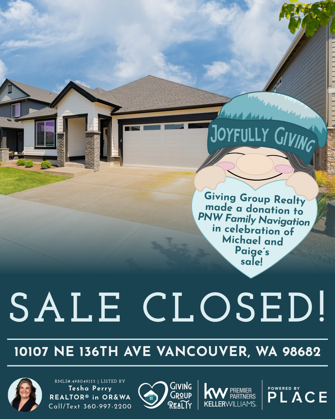 Congratulations, Michael and Paige! We made a donation to Pacific Northwest Family Navigation to celebrate your sale.