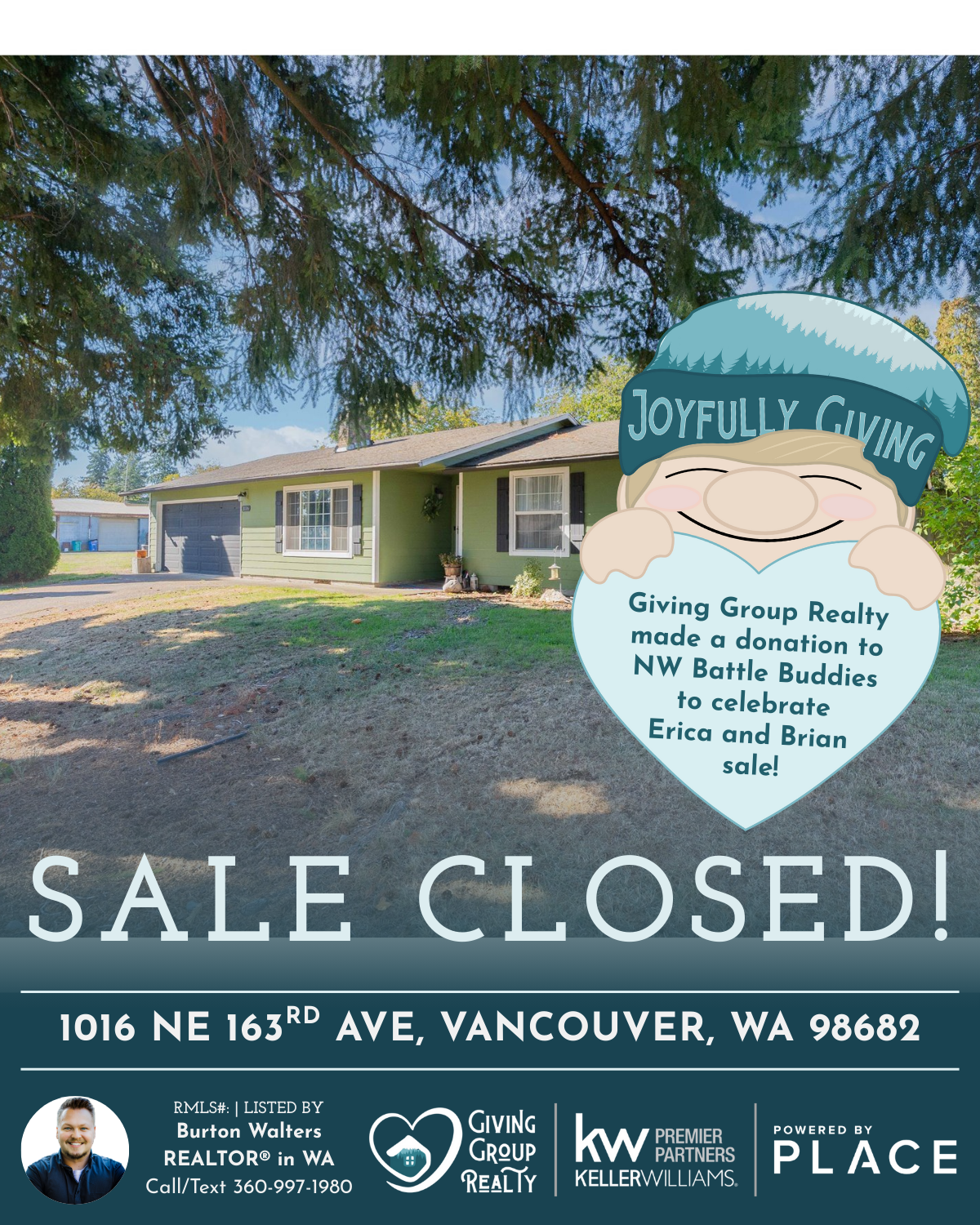 Congrats, Erica and Brian! To celebrate your home sale, we donated to our pledge a pup program w/NW Battle Buddies.