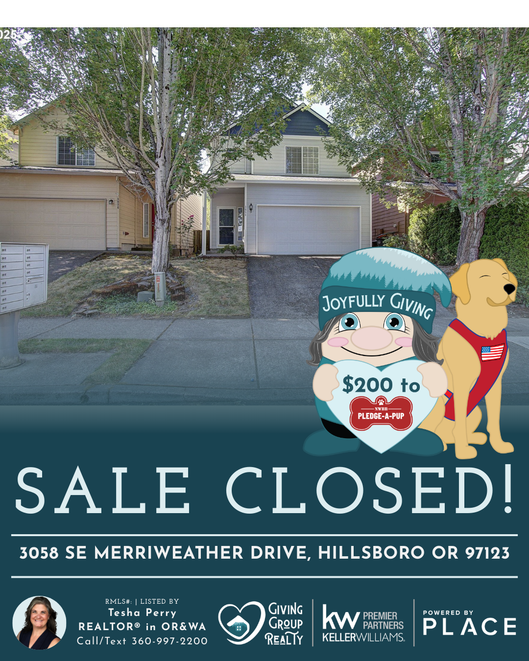 Congrats, Joshua and Cheryl! To celebrate your home sale, we donated to our pledge a pup program w/NW Battle Buddies.